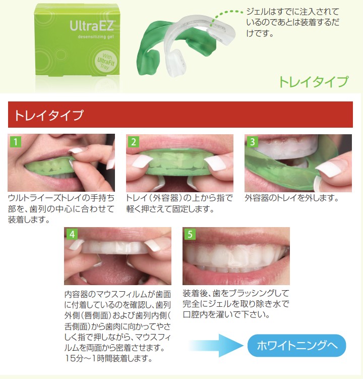 その他にもホワイトニング時の嫌な知覚過敏症状を抑えるための様々な方法をご用意しております。