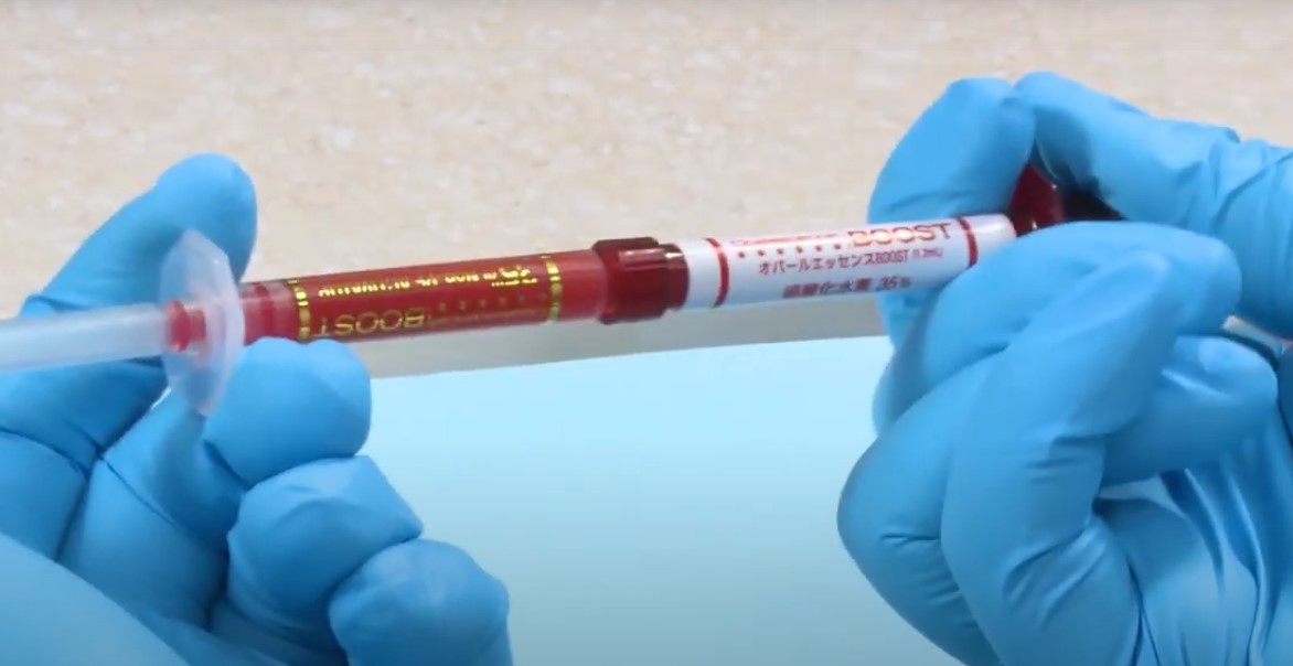 オパールエッセンスBOOSTは使用時に2本のシリンジに入った薬材を混合し過酸化水素をアクティベートするためホワイトニング剤の濃度の劣化が生じない最強のパワーホワイトニングシステムです。